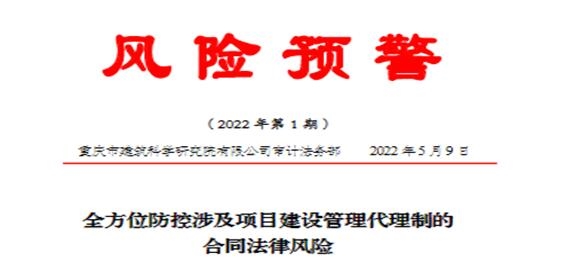 近日,公司審計法務部首次發布《風險預警》,針對涉及項目建設管理代理制的合同法律風險,詳細列舉不同情形下的具體風險并就防控要點進行提示,以期加強生產經營部門的風險防控意識,進而構筑公司穩定發展的“防火墻”。