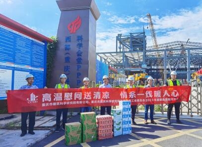 近日,重慶設計集團市建科院公司黨委副書記、總經理、董事張雪芹同志赴科學城分院承接鋼結構監測業務的“西部(重慶)科學城科學會堂”項目,慰問在高溫酷暑中堅守崗位的一線職工,為他們送去防暑降溫用品與真誠關懷。