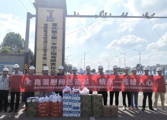 88午,重慶設計集團所屬子企業重慶市建筑科學研究院有限公司黨委委員副總經理、總工程師張京街帶隊赴監理咨詢公司承擔監理的軌道4號線與兩江大道節點工程開展高溫慰問活動,為堅守一線的職工送去清涼與關懷,勉勵員工在各自崗位上真抓實干,為公司發展做貢獻。