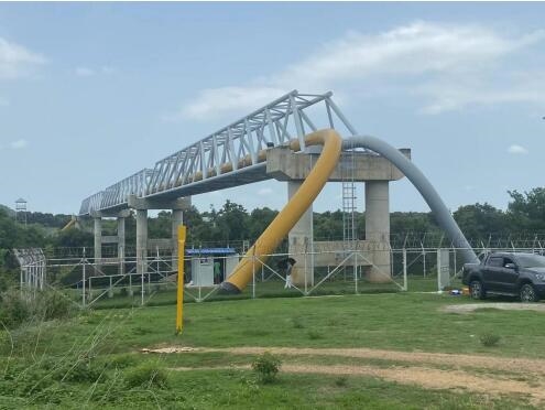 米坦格河桁架跨越工程為中緬油氣管道-緬甸段重要控制性節點工程,該橋梁跨越處河面寬度為180米,采用三跨簡支桁架梁結構,邊跨64.4m,中間跨65m,總跨度193.8m。受東南亞天然氣管道有限公司(SEAGP)的委托,市建科院承接了緬甸段米坦格河桁架跨越工程定期檢測服務。
