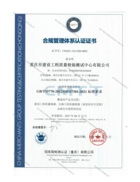 近日,重慶設計集團建科院公司檢測中心順利通過招商局檢測認證(重慶)有限公司合規管理體系審核,并獲得合規管理體系GB/T35770—2022國家標準和ISO37301:2021國際標準認證證書,標志著檢測中心在合規管理體系建設方面邁上發展新臺階。