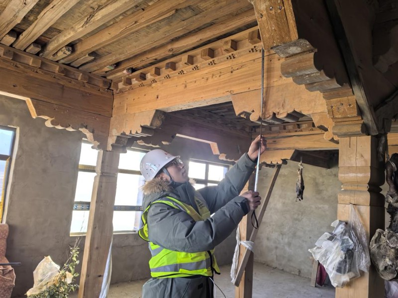 在現場,專家團隊成立了黨員突擊隊,面對冬季高原低溫、低壓、低氧的惡劣環境帶來的巨大生理挑戰,他們本著“時間就是生命,千方百計保障好受災群眾住房條件是關鍵”的原則,充分發揮戰斗堡壘作用和先鋒模范作用,克服高海拔、低溫及余震等不利外部條件,嚴格遵循災后建筑安全性應急評估相關技術標準,細致考察房屋的場地環境、地基基礎、結構部分和非結構部分破壞情況,科學判定房屋的安全使用等級(可用、限制使用或禁止使用),為房屋能否繼續居住提供了明確指導。排查工作結束后,針對被判定為限制使用的房屋,專家團隊圍繞房屋的整體垂直度、混凝土構件強度、混凝土構件鋼筋配置、構件破損情況、結構布置復核等方面進一步開展結構安全性鑒定,以滿腔熱情和堅定意志提前保質保量完成了分配的任務,用責任與擔當筑起硬核堡壘,讓黨旗在抗震救災一線高高飄揚。