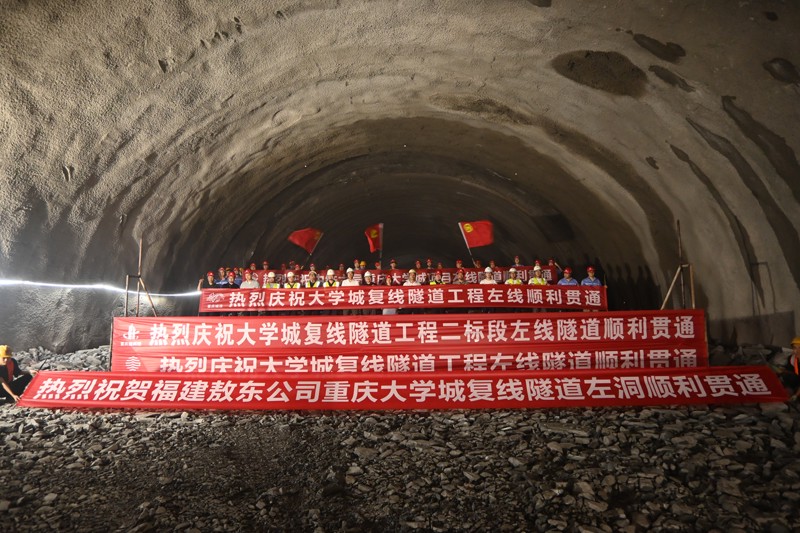 重慶大學(xué)城復(fù)線隧道工程二標(biāo)段左線隧道貫通現(xiàn)場