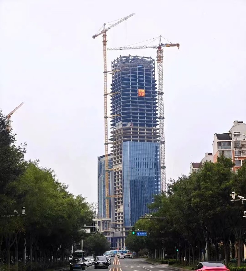 (高度達249.9米的超甲級濱水寫字樓運河天璽鋼結構封頂)