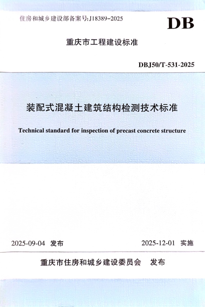 市建科院聯合重慶市住房和城鄉建設技術發展中心主編了《裝配式混凝土建筑結構檢測技術標準》。