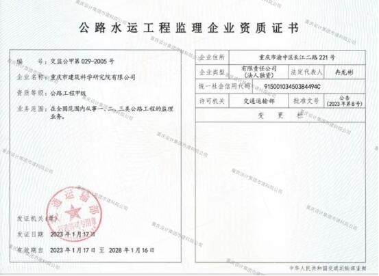 公路水運(yùn)工程監(jiān)理企業(yè)資質(zhì)證書(shū)